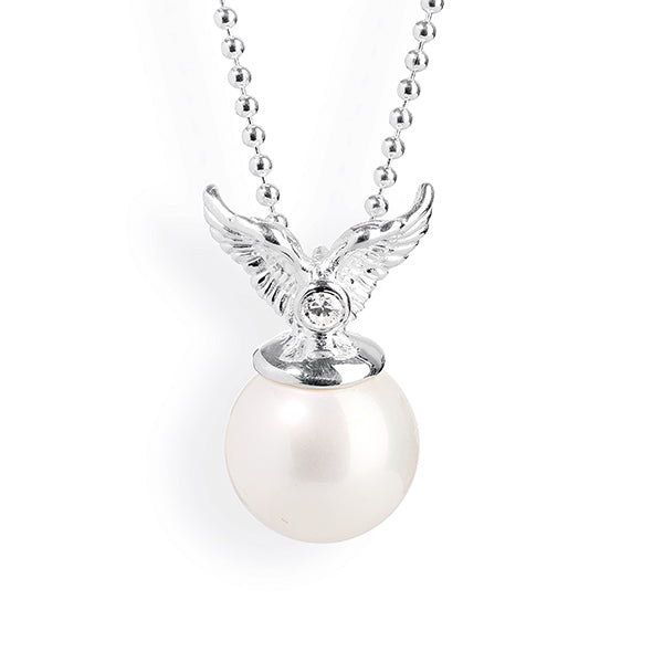 Mini's, Fly with Me Anhänger aus Silber mit Zirkonia und Muschelkernperle.