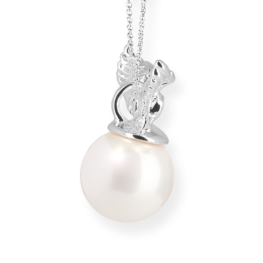 Die detailverliebten schönen Flügelchen sitzen auf einer schimmernden Muschelkernperle und verleihen dem klassischen Muschelkern Anhänger einen beschwingten Anstrich.